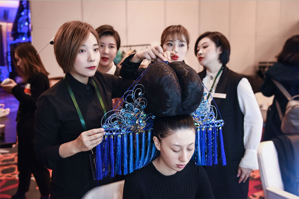 在(zai)後(hou)檯(tai)毛戈平造(zao)型師們整整準備(bei)了(le)6箇(ge)小(xiǎo)時